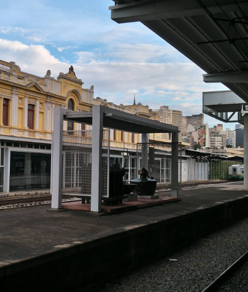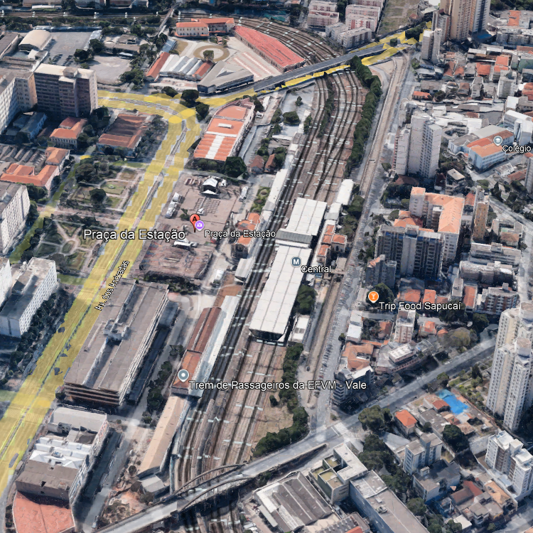 O nome “Praça da Estação” deriva da presença histórica da estação ferroviária, hoje convertida em Museu de Artes e Ofícios, preservando a memória do trabalho e da vida cotidiana brasileira.
