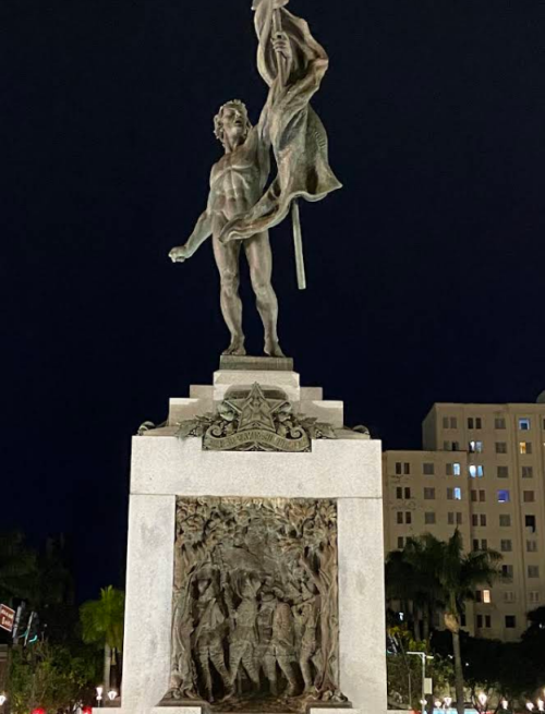 Este imponente monumento é um dos símbolos cívicos da praça, instalado em 1930 para celebrar o centenário da Inconfidência Mineira. A escultura em granito e bronze presta homenagem aos heróis do movimento. Em seu pedestal, encontra-se a célebre inscrição em latim “Quod montani semper liberi” (“Os montanheses são sempre livres”), que reforça o espírito de liberdade e a identidade do povo mineiro.