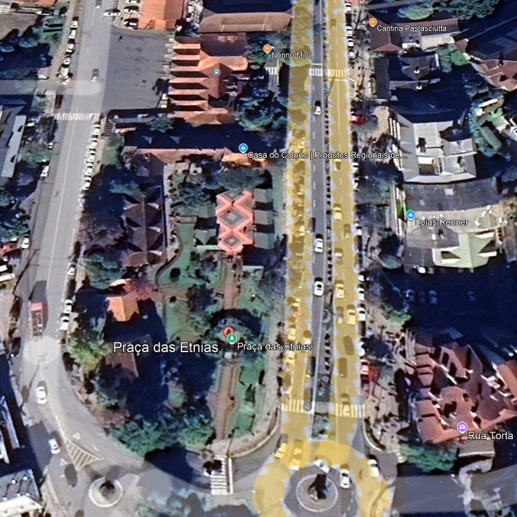 As vagas rotativas próximas à Praça das Etnias estão distribuídas ao longo da Av. Borges de Medeiros e em ruas laterais como João Petry e São Pedro. Essas vagas funcionam bem para quem fará uma visita rápida e deseja ficar muito próximo do local. Para quem quer apenas comprar na Casa do Colono, tirar fotos ou caminhar rapidamente pela praça, a Zona Azul costuma ser suficiente, mas tende a lotar em períodos de alta temporada.
