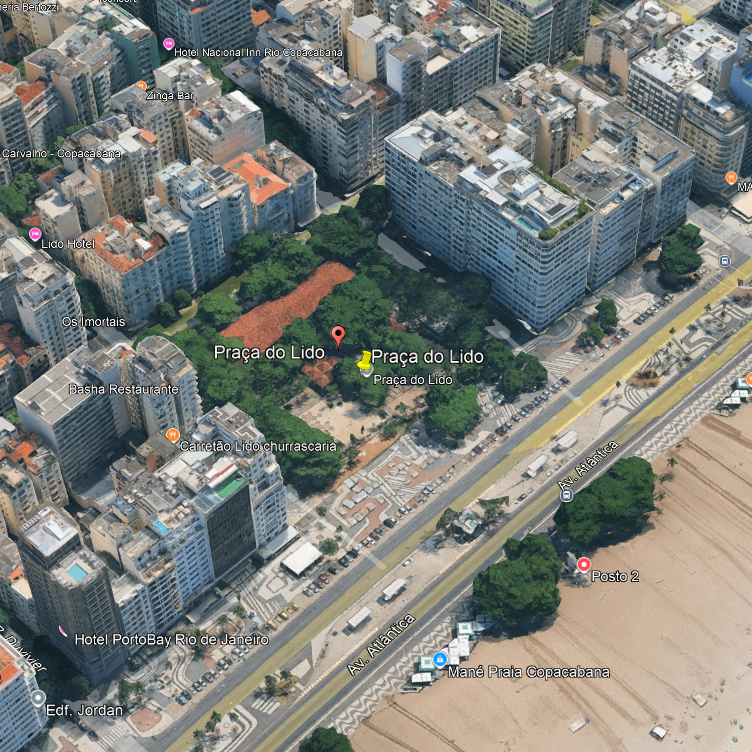 A Praça do Lido está a apenas dois minutos a pé da famosa Praia de Copacabana, na altura do Posto 2. É um acesso rápido e fácil para desfrutar da orla, do calçadão e de toda a efervescência da “princesinha do mar”.