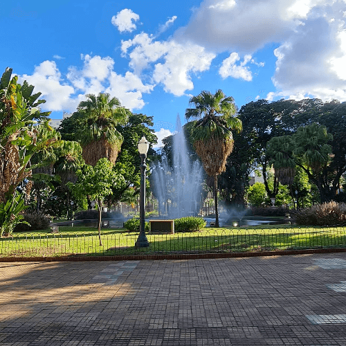 Para quem busca um momento de tranquilidade no Centro, a praça oferece áreas verdes, sombra, paisagismo e um ambiente ideal para desacelerar.
