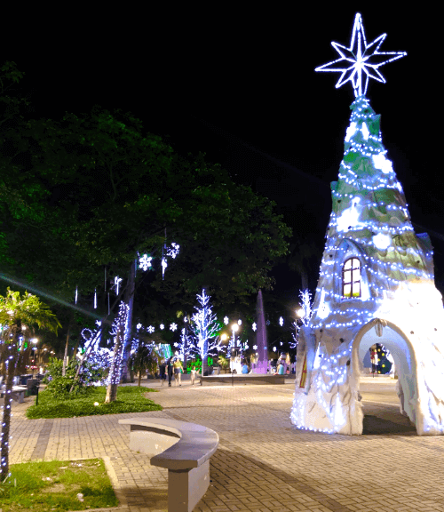 Durante o período de Natal, a praça costuma receber decoração especial e iluminação temática, tornando-se um ponto de visitação noturno muito procurado para fotos e passeios.
