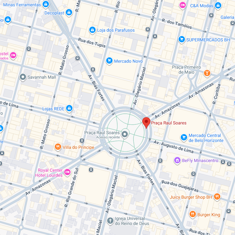 A Praça Raul Soares está situada no Centro de Belo Horizonte, ponto estratégico que conecta diversas vias e serviços urbanos.