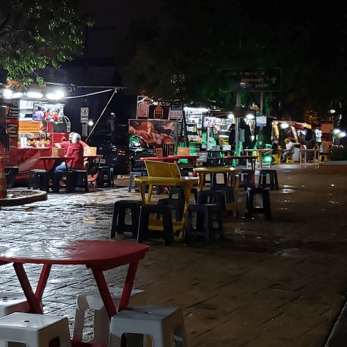 Os food trucks que se instalam ao redor da praça são hoje uma das principais atrações da vida noturna local. Oferecem lanches rápidos, hambúrgueres artesanais, sobremesas e comidas populares que atraem moradores e visitantes diariamente, especialmente no fim da tarde.